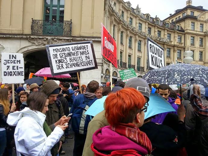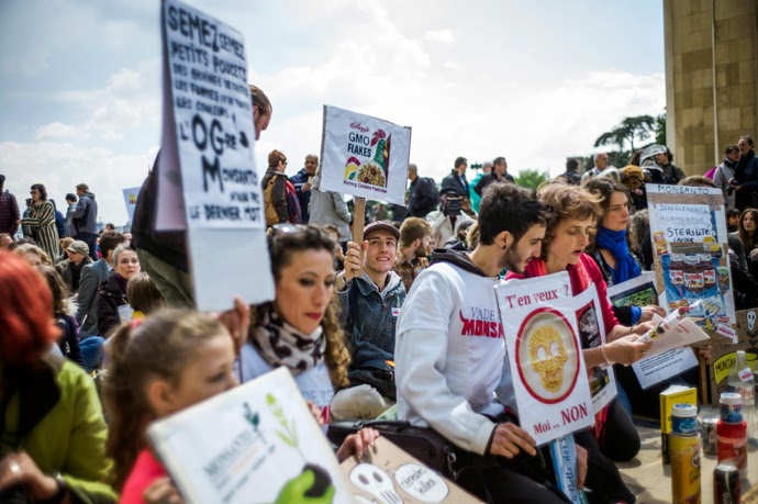 O ano de 2012 viu uma primeira vaga internacional de manifestações, originada pelo movimento Occupy Monsanto, incansável na mobilização dos consumidores para os perigos invisíveis presentes na comida: «Quer goste ou não, as hipóteses da Monsanto ter contaminado com produtos químicos e organismos geneticamente modificados a comida que você comeu hoje são grandes», alertava o movimento no seu site.