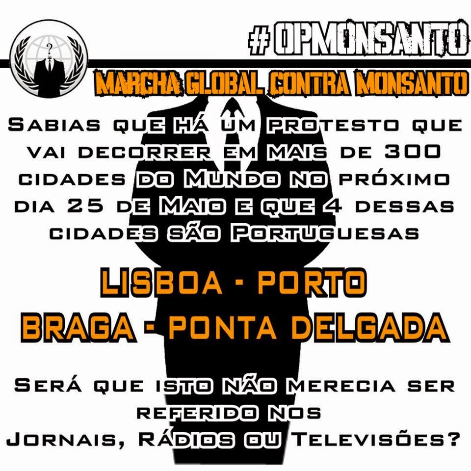 O dia 25 de Maio de 2013 viu o mundo dar um cartão vermelho total à gigante multinacional Monsanto. O protesto, espalhado por dezenas de países e centenas de cidades à volta do globo, é um marco na luta internacional contra a privatização da Natureza e a favor da preservação da biodiversidade. Marchando, em rota de colisão com o poder corporativo, os cidadãos mostraram a sua indignação perante a monopolização do mercado das sementes e o perigo latente e ainda misterioso dos alimentos geneticamente modificados. A falta de supervisão científica, a notória promiscuidade entre governos e empresas do ramo da biotecnologia e a gritante falta de informação quanto aos malefícios dos produtos transgénicos foram razões mais que suficientes para o povo, um pouco por todo o planeta, se agregar em torno daquilo que é de todos por direito: a liberdade do processo alimentar e a integridade biológica das culturas agrícolas. O movimento «March Against Monsanto» visou consciencializar as populações para o perigo global em que vai sendo transformada a comida, autêntica refeição de destruição maciça, nas mãos de empresas que apenas perseguem o lucro de modo cego e avassalador.